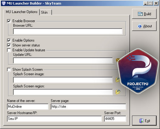 3° Selecione "Enable Options", Show Server status, para ter a opção de video e som, e para aparecer o status do server